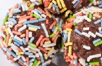 80 g moučkový cukr ,1 balíček Vanilkový cukr, 50 g mandle oloupaných nasekaných ,2 lžíce rozinky namočené v rumu , 20 g kakao , 2 bílky, 200 g piškoty rozdrcené, 2 lžíce rumu, čokoládová poleva. Na přípravu těsta v míse smícháme moučkový cukr s vanilkovým cukrem, mandlemi, rozinkami, kakaem, bílky, piškoty a rumem a ručně prohněteme, aby vzniklo kakaové těsto. Z těsta v dlaních uděláme asi 35 stejných kuliček, které lehce obalíme v moučkovém cukru. Kuličky uložíme na 1 hodinu do chladničky. Polevu rozpustíme podle návodu na obalu, nalijeme do misky a necháme mírně vychladnout. Každou kuličku napíchneme na špejli nebo párátko a namočíme do rozpuštěné polevy. Kuličky necháme mírně ztuhnout na kuchyňské mřížce nebo na papíru na pečení, poté je opatrně přemístíme do papírových košíčků. Hotové kuličky necháme ztuhnout při pokojové teplotě. Uchováváme v chladu.